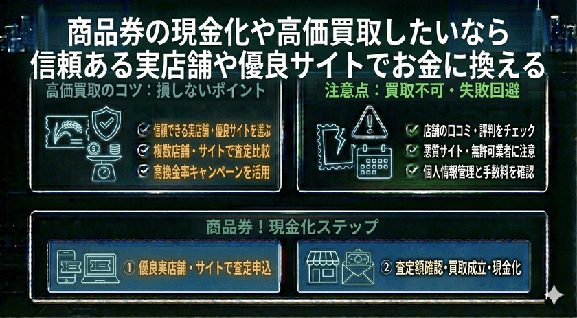 今回は、商品券を賢く現金化し、高価買取を実現するための秘訣をお伝えしました。